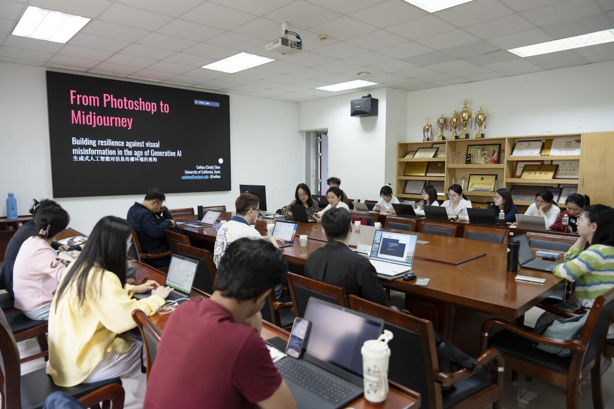报告之后,沈粹华教授与在场的“欺骗性人工智能”国家社科重大课题组成员进行了热烈的互动交流与合作探讨。