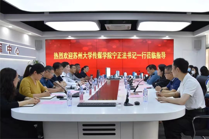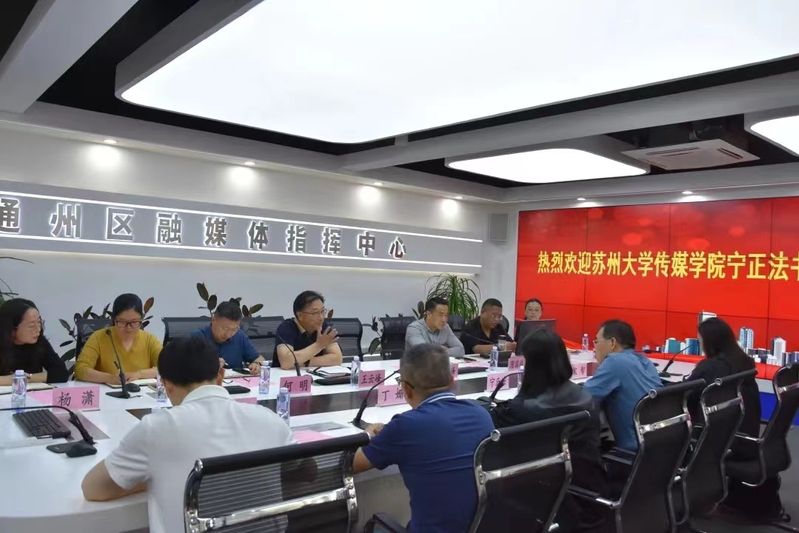 为促进校媒之间的交流合作以及高质量就业工作,5月18日上午,苏州大学传媒学院党委书记宁正法率队前往南通通州区融媒体中心进行参观调研,双方就人才培养、深度融合等进行了全面交流。通州区融媒体中心中心主任、广播电视台台长丁晓峰,中心总编辑陈国祥,中心副主任王云峰,中心副主任曹军,以及中心相关部门负责人参加了座谈会。传媒学院党委副书记、副院长丁姗,专职组织员丁新红,学工办主任宋智,学工办副主任朱飞,以及2020级、2021级的16名学生参加了此次调研交流活动。