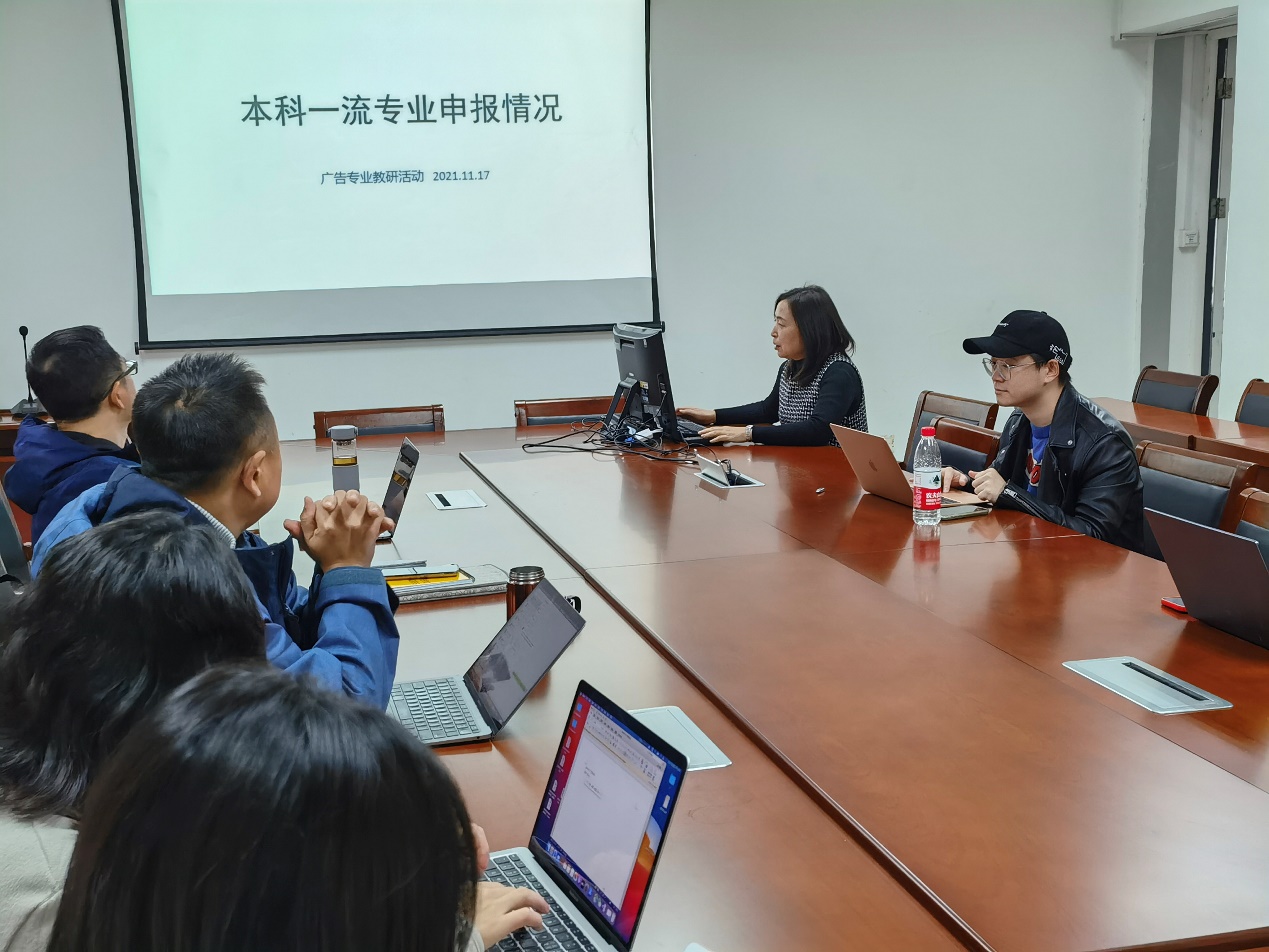 2021年11月17日下午,广告系在学院二楼学术活动中心举办期中教学研讨,广告系全体教师参加。本次教研活动分两个阶段进行,主题是:聚焦一流本科专业建设,提升自身教学和科研能力。广告系主任胡明宇老师主持教研活动。