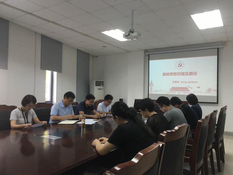 支部书记王雁冰同志首先为大家介绍了本次学习活动的目的意义。他指出解放思想大讨论要以习近平新时代中国特色社会主义思想为指导,深入贯彻落实党的十九大精神,全面落实省委决策部署,紧紧围绕学校、学院改革发展突出问题这一鲜明导向。