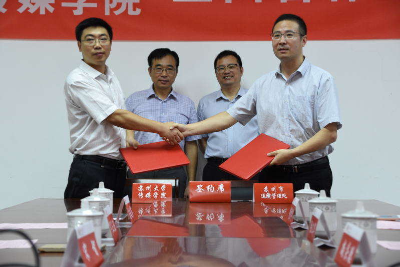 签约仪式开始前,陆文华局长一行在传媒学院领导的陪同下参观了学院的实验室、演播室等相关硬件设施,进一步了解了传媒学院的办学特色、办学历史以及师资力量。在签约仪式上,传媒学院与运输管理处围绕合作共建工作进行了深入交流。双方在专业技术、人才培养、党建工作的互助结对方面达成了高度共识。在此种共识下,运管人才传媒素养培训、运管微信平台策划、传媒学院实践实习基地和党员服务基地的建立、“我在苏州运管处”党日活动的开展都已经或将要启动实施。