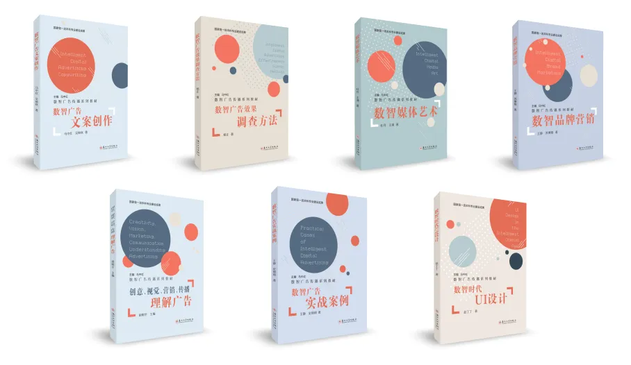 为了积极响应国家数字经济发展战略,进一步有效应对当前数智时代广告学专业教学的新要求,近期苏州大学广告系策划并出版了“数智广告传播系列教材”。本系列教材共计7本,分两轮出版,由苏州大学传媒学院马中红教授主编。本轮共出版系列教材中的《数智广告文案创作》(马中红、吴映秋)、《数智广告效果调查方法》(杨正)、《数智媒体艺术》(杜丹、王涌)、《数智品牌营销》(王静、苏博雅)、《创意、视觉、营销、传播——理解广告》(胡明宇)五本。