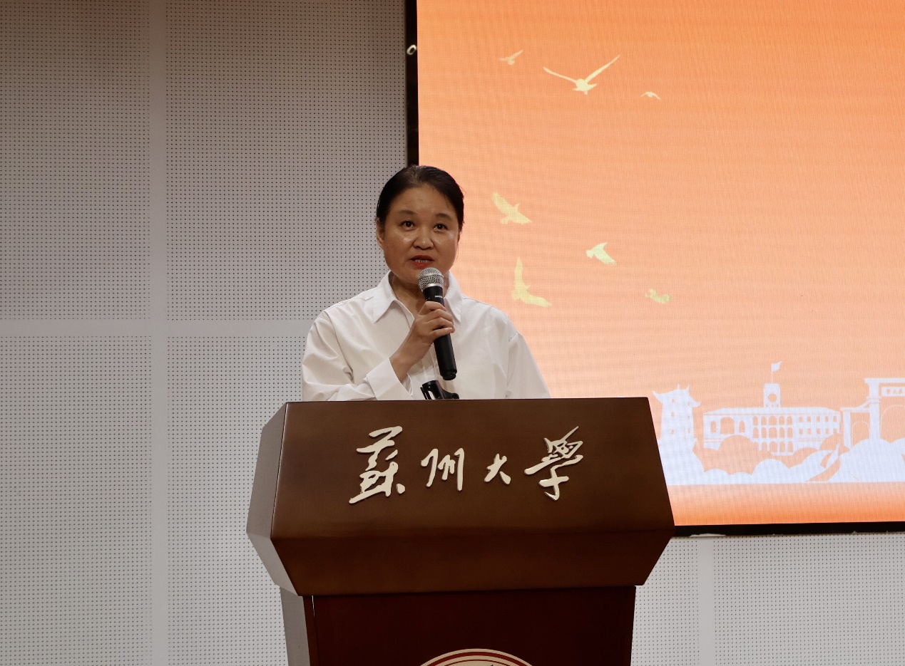全燕代表全体教师发言,热忱欢迎25级新生们的到来。她说,高质量的学习往往发生在被问题“击中”的瞬间,面对信息洪流与人工智能带来的挑战,传媒学子的核心价值在于通过信息筛选、叙事组织和社会观察,从而建构社会认知体系。她希望同学们在苏州这座城市中学会观察,在苏大的厚重与开放之间学会思考,在传媒学院的创新与磨砺中学会担当,在复杂世界中保持清醒与力量。
