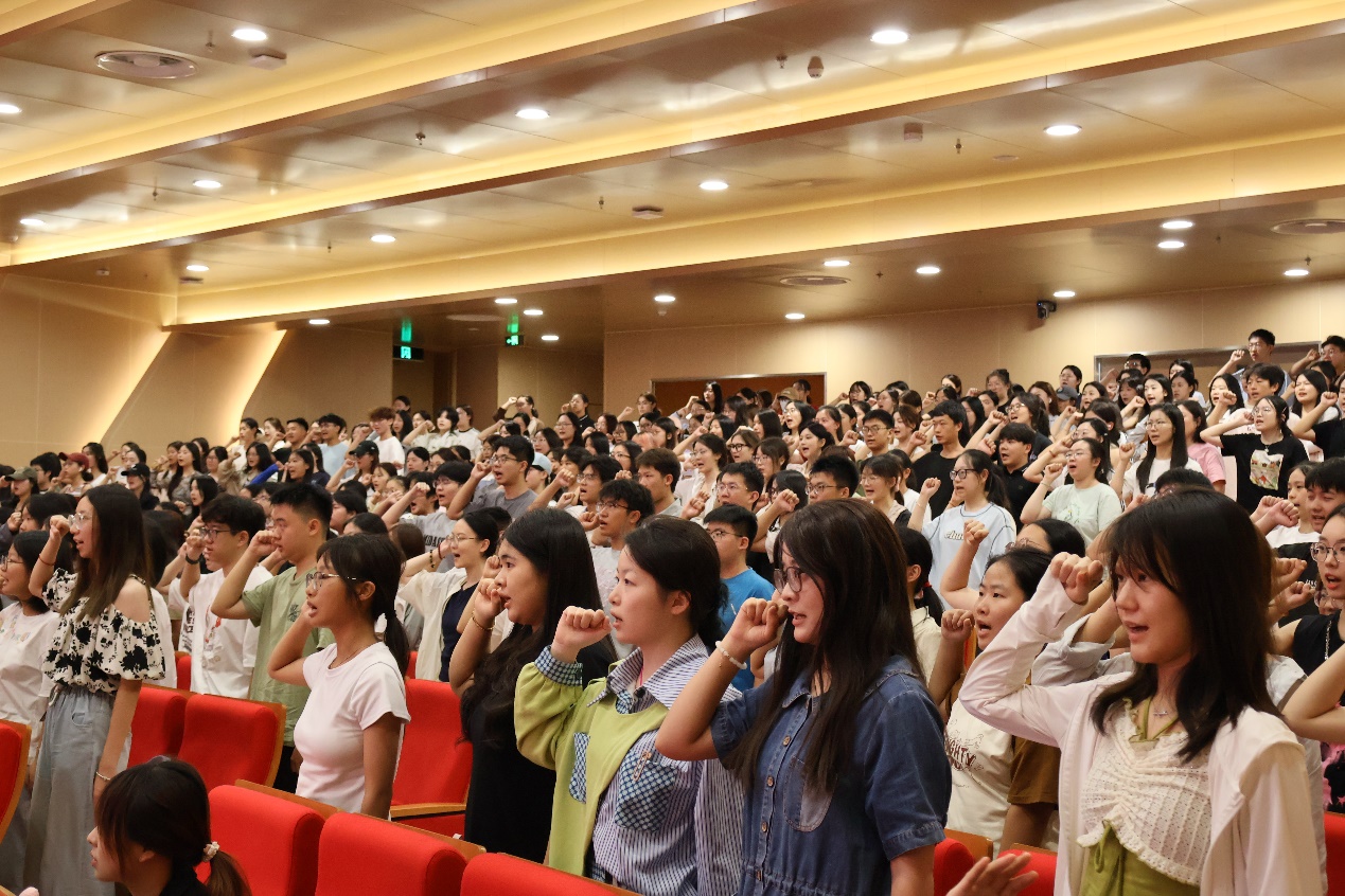 开学典礼的最后,2025级全体新生跟随领誓人进行了宣誓。誓言铮铮,从这一刻起,同学们正式成为传媒学院大家庭的一部分,将在往后的三到四年里一同发光发热。