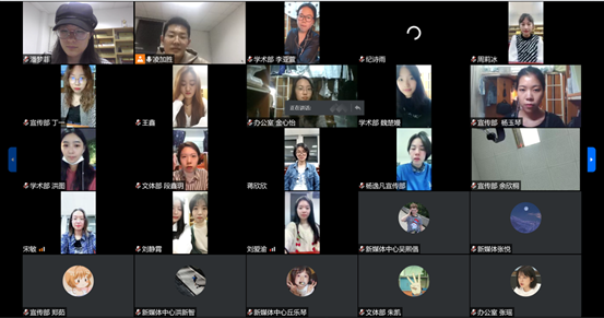 2020年10月14日晚,苏州大学传媒学院2020届研究生会第一次全体会议于线上正式举行。本次会议由传媒学院研究生会主席凌加胜主持,传媒学院第十一届研究生委员会全体成员及各部门干事共同参加。
