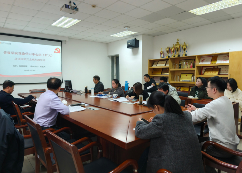 12月9日上午,传媒学院党委举行理论中心组(扩大)学习会,进行总体国家安全观专题学习,传媒学院党委书记张健主持会议;传媒学院党委委员出席会议;综合办公室、学科办公室负责人,全体专职辅导员列席会议。