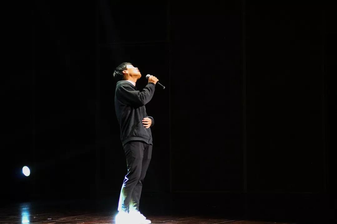 由传媒学院的王欢栋为大家演唱《男孩》,发人深思。