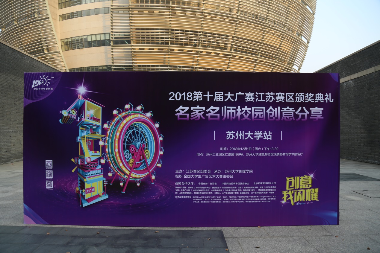 2018年12月2日,第十届全国大学生广告艺术大赛江苏赛区颁奖典礼将在苏州大学炳麟图书馆学术报告厅隆重举行。4月份的作品征集至12月初,春天的耕耘在秋末迎来了丰硕的果实,来自二十余所高校数百余名莘莘学子的到场让充满了更多温暖,更多感动。