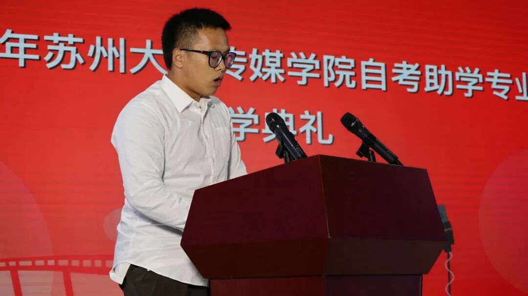 教师代表龚明辉和学生代表徐宇晨分别发言。龚明辉老师希望新生们珍惜在苏大学习的机会,与同学友爱互助并且严格遵守学校、学院的相关制度,积极配合完成相关工作。同时,他也鼓励学生们发挥主观能动性,尽快适应大学生活,祝愿同学们顺利完成学业,实现梦想。徐宇晨同学首先向苏州大学的老师、同学表示崇高敬意和感谢,接着他从养成习惯、掌握方法、培养能力三个方面出发展望未来的学习生涯,并号召同学们以希望理想为风帆,不负师长热切期盼,在苏州大学的热土上继续创造新的辉煌。
