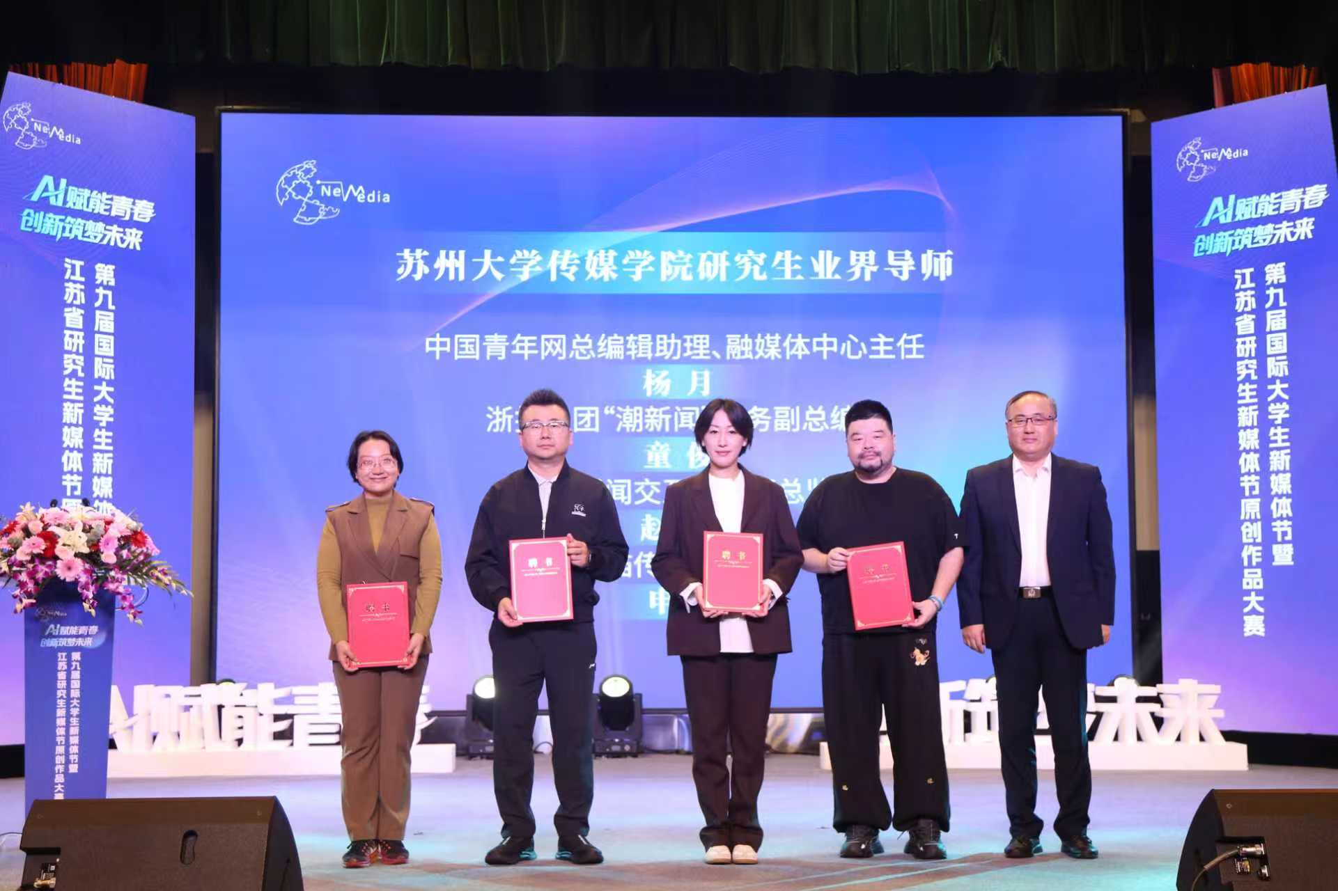 11月1日,第九届国际大学生新媒体节暨江苏省研究生新媒体节原创作品大赛在苏州圆满落幕。国际大学生新媒体节暨原创作品大赛由中共江苏省委宣传部与中共苏州市委宣传部指导、苏州大学主办、苏州大学传媒学院承办,以“AI赋能青春,创新筑梦未来”为主题,共收到海内外120余所高校的615件参赛作品;江苏省研究生新媒体节暨原创作品大赛由江苏省文学类研究生教育指导委员会主办,围绕“AI启新思,研路创未来”主题,共征集到省内高校研究生作品267件。