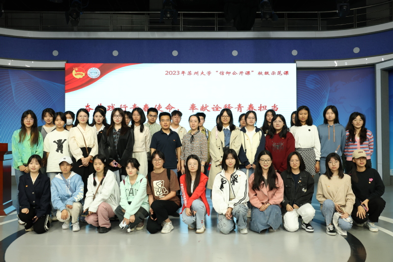 为全面学习宣传贯彻落实党的二十大精神和习近平新时代中国特色社会主义思想,推动党的二十大精神深入青年心、激发青年志,引领广大团员青年争做有理想、敢担当、能吃苦、肯奋斗的新时代好青年,10月18日下午,2023年苏州大学“信仰公开课”校级示范课在独墅湖校区传媒学院大演播厅举行。苏州科城安居新型建材科技有限公司总经理、苏州青年蓝天救援队队员洪卫兵,著名作家、观止读书会发起人、理事会主席王世东,苏州大学团委副书记徐娜,传媒学院党委副书记、副院长丁姗,团委书记王雁冰, “行之有声”志愿服务团队负责人刘娇娇,“星火寻迹,传忆留音” 团队负责人程俊扬, 2023年苏州大学“青年马克思主义者培养工程”秋季班学员、传媒学院“青年马克思主义者培养工程”学员等出席了本次活动。