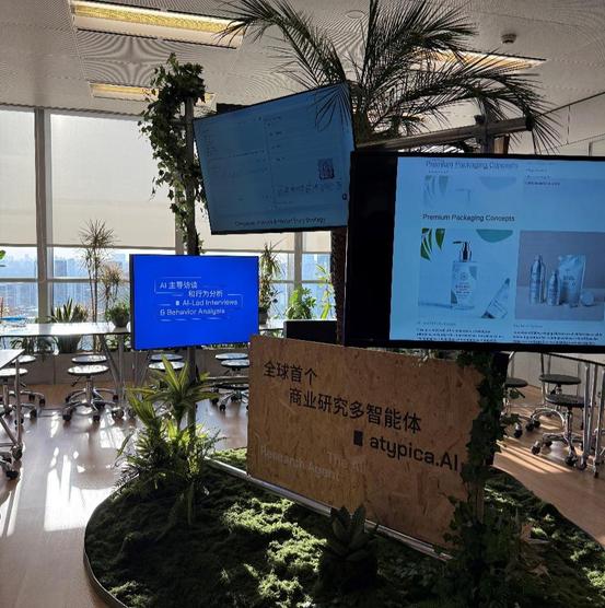 参访过程中,师生们就人工智能如何赋能传媒教育展开了深入讨论。特赞科技致力于构建企业级的创意内容数字新基建,围绕企业内容资产的生命周期,打造了连接企业内外内容管理、积累、生产、分析的数字化平台。在AI技术展示环节,师生们体验了特赞科技最新开发的多智能体商业研究系统——atypica.AI。