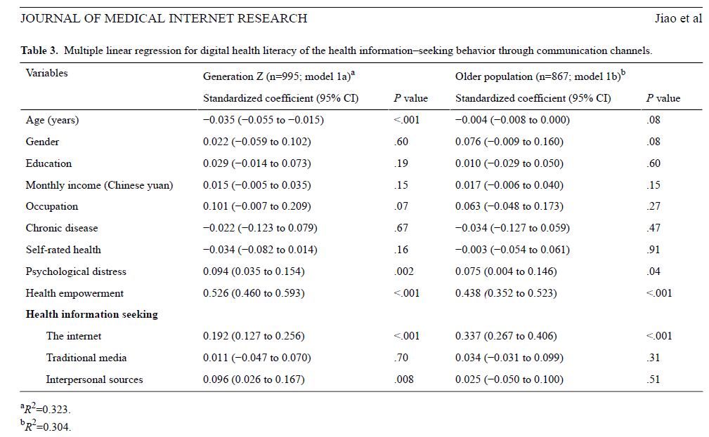 在此背景下,苏州大学科技传播研究中心主任王国燕教授领衔的科技传播跨学科团队联合澳门大学社会科学学院传播系张文瑜教授领衔的健康传播国际团队,通过对1862名中国受访者进行调查,比较了Z世代和老年群体的健康信息行为,开展了健康信息搜索与医疗保健的专题实证研究,研究成果以“Predicting and Empowering Health for Generation Z by Comparing Health Information Seeking and Digital Health Literacy: Cross-Sectional Questionnaire Study”为题, 2023年10月30日在线发表于医学信息学、健康保健科学与服务领域的SCI,JCR分区Q1期刊Journal of Medical Internet Research。