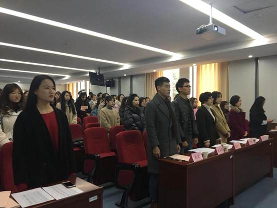 本次会议主要有四个议程。首先,第九届研究生会副主席朱江进行讲话,报告了到会代表人数,审议并通过了代表资格审查报告和主席团、筹备组代表资格审查小组、工作者名单,以及大会代表产生的条件及办法,并介绍了与会嘉宾。随后,大会正式开幕,全体成员起立、奏国歌。唐庆华老师向研究生同学致辞,对于第九届研究生会成员认真严谨的工作态度以及优秀的工作成绩给予肯定,并表达了对下一届研会的期待和鼓励。