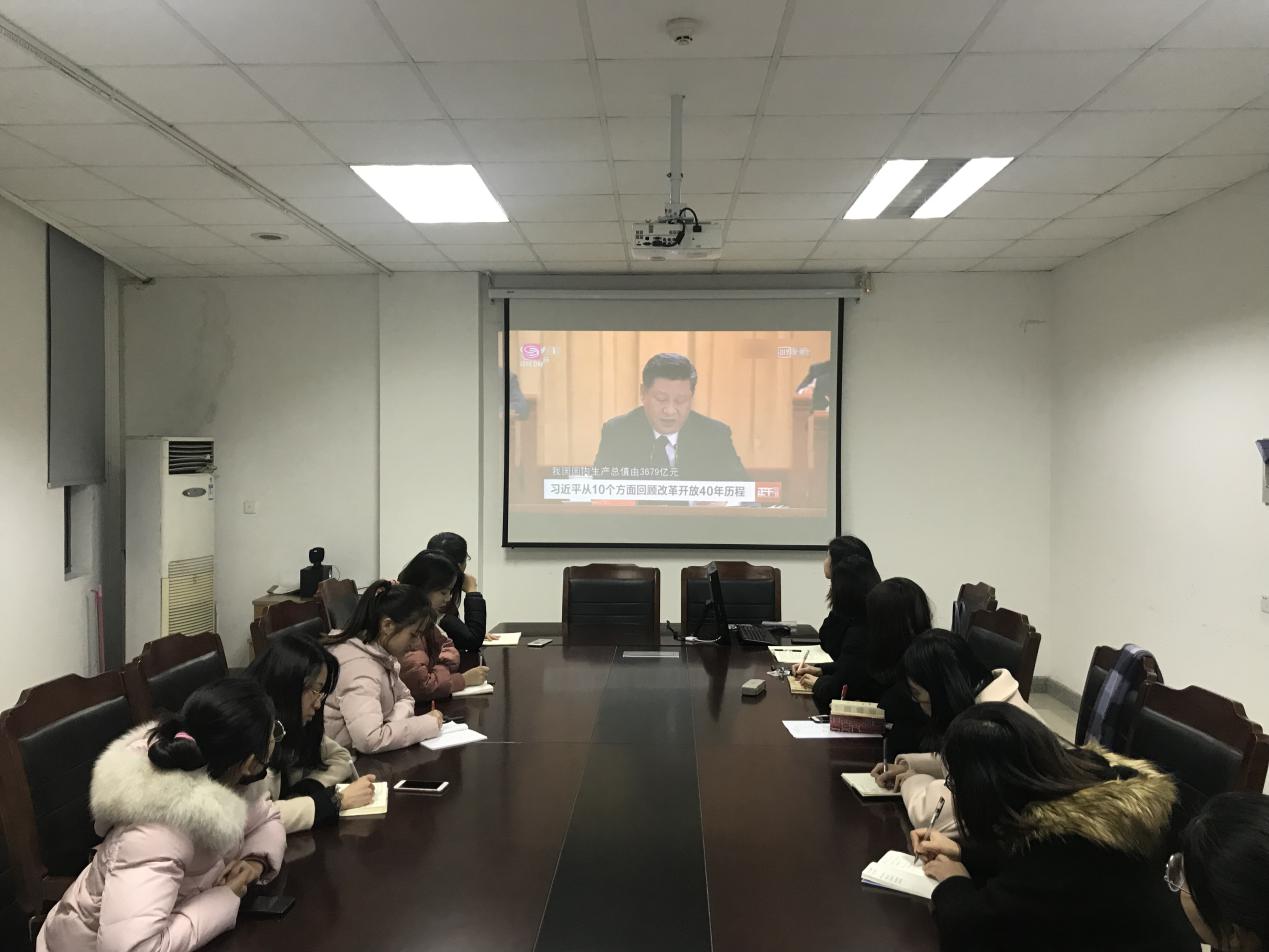 12月20日下午,传媒学院研究生分会在学院一楼会议室召开思想学习会议,就习近平总书记在庆祝改革开放40周年大会上的重要讲话进行学习并交流。各年级学生代表与全体研会成员参加了此次会议。