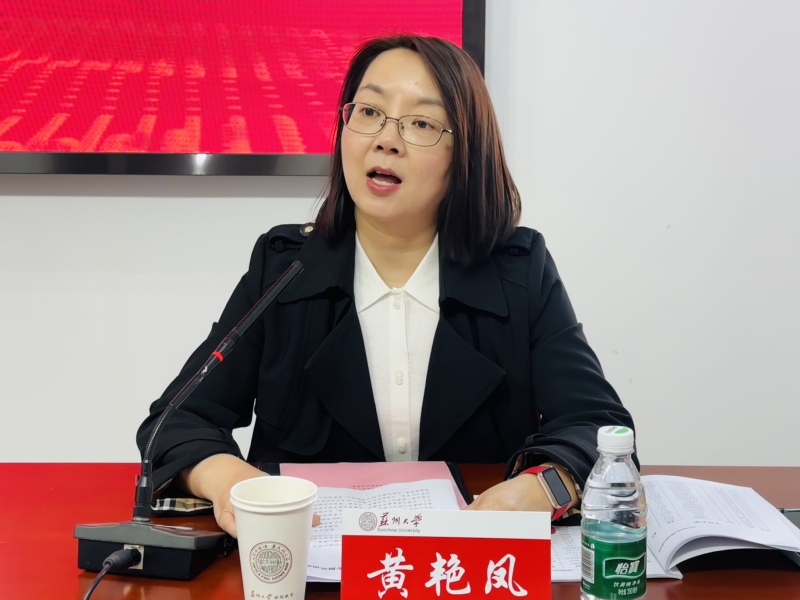 开班仪式上,黄艳凤首先对参加本次培训的学员表示热烈欢迎,并向学员介绍了苏州大学的百年发展历程以及其前身东吴大学的历史,包括我校的发展现状以及在学科建设、人才培养、科学研究以及社会服务等方面取得的成果。她希望各位学员能够在这次培训中学有所获,收获满满。最后,她预祝此次培训圆满完成,各位学员在苏学习期间一切顺利。