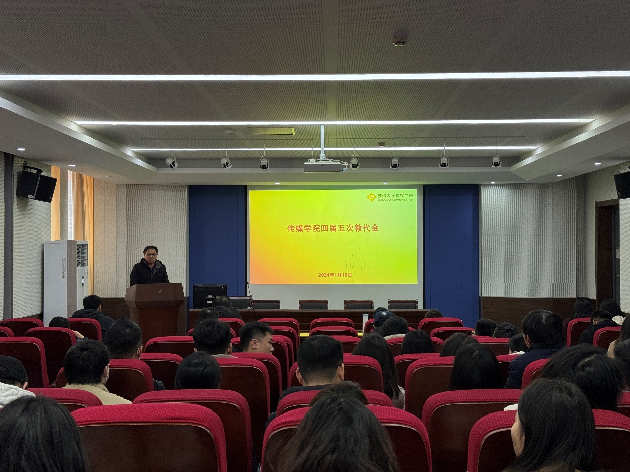 2024年1月10日下午,传媒学院四届五次教职工代表大会于1005幢5148会议室召开。传媒学院党政领导班子成员以及全体学院教职工出席本次会议。大会由学院党委书记张健主持。