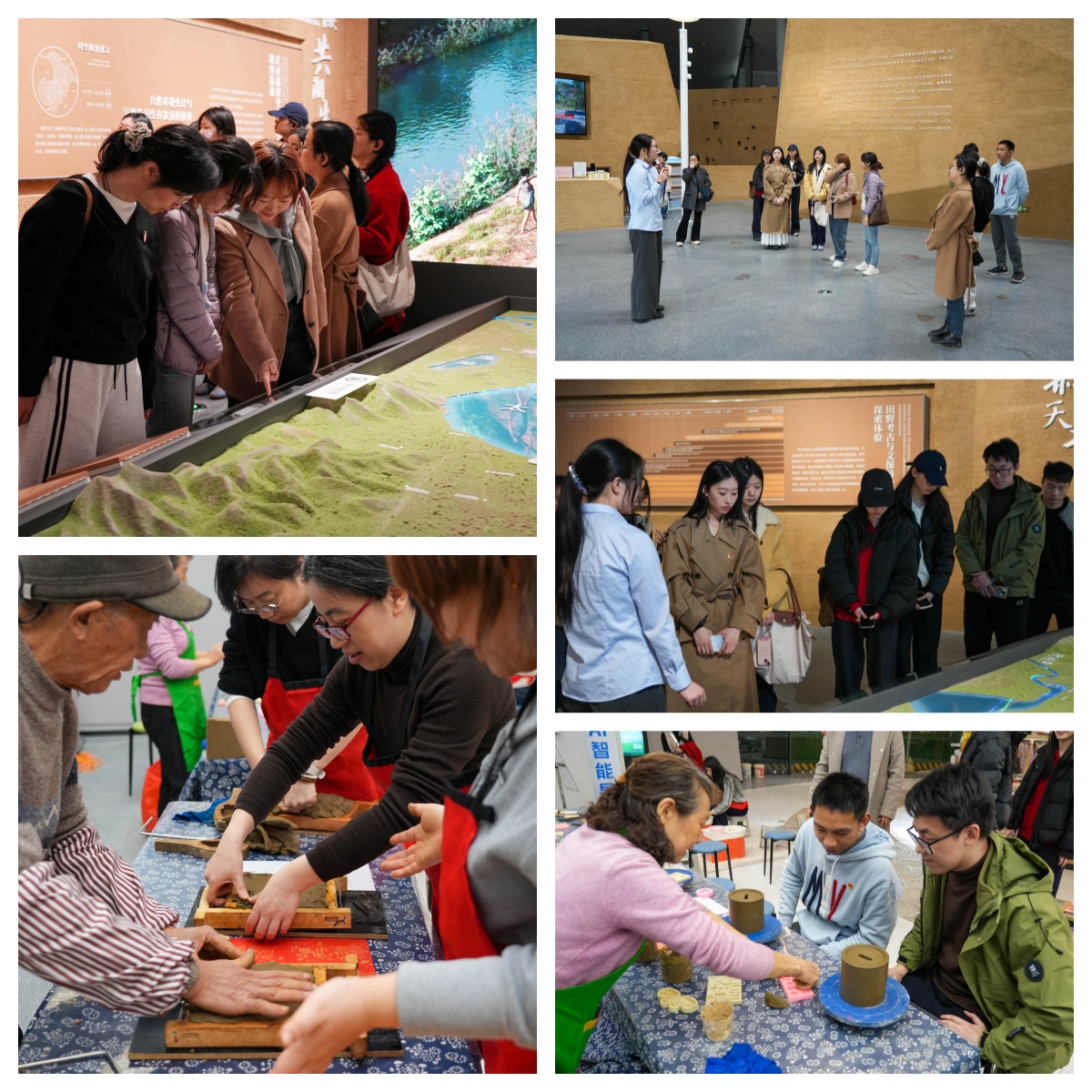 苏州考古博物馆坐落于石湖之畔,紧邻越城遗址,是江苏省首座考古学科专题博物馆。其建筑外观以“石锛”“钺”等出土石器为原型,呈现出“破土而出”的粗犷与厚重,寓意着考古工作“上穷碧落下黄泉”的探索精神。在博物馆讲解员的引导下,两支部一行参观了“源起江南——苏州地域文明探源”与“华章江南——苏州考古发现成果”两大核心展览。