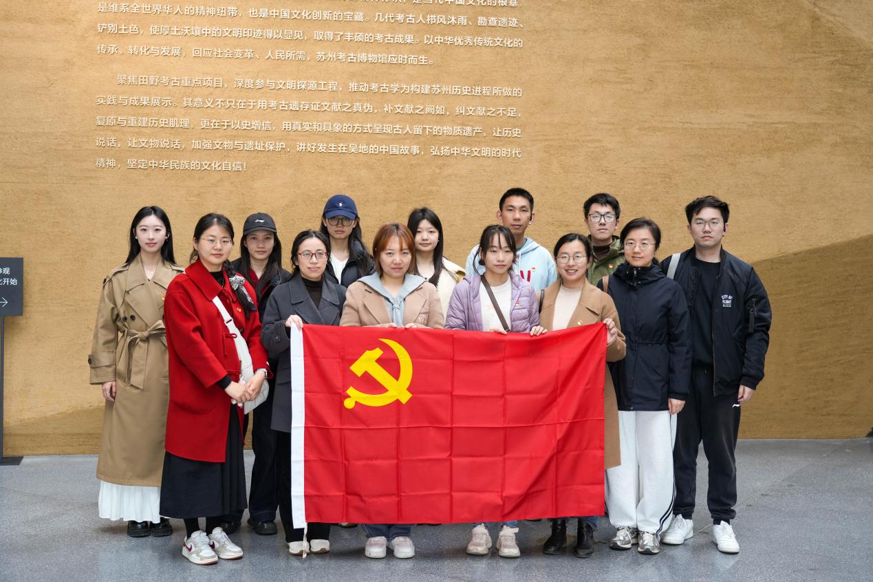 考古发现的不断深入,为哲学社会科学研究提供了新的源头活水,也为研究生学术探索与专业学习提供了丰富的素材。活动结束后,参与人员纷纷表示,通过近距离感受苏州考古的丰硕成果,更加坚定了文化自信。在今后的学习与工作中,不仅要深耕专业、练好学术基本功,更要当好江南文化的“传播者”,依托苏大学术平台与传媒专业优势,积极讲好苏州历史故事,为推动中华优秀传统文化的创造性转化与创新性发展贡献青春力量。传媒学院研究生第一党支部也将以此次活动为新的起点,持续探索“党建+专业”的融合路径,引导研究生党员在学思践悟中坚定理想信念,在知行合一中练就过硬本领,让党旗在科研学习一线高高飘扬。