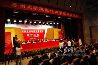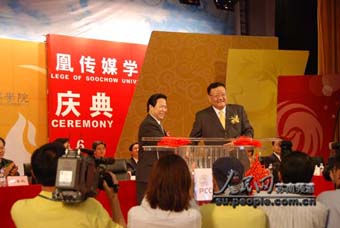 苏州大学与香港凤凰卫视集团合作共建的“苏州大学凤凰传媒学院”今天(6月6日)挂牌成立。江苏省委书记、省人大常委会主任梁保华与香港凤凰卫视集团主席刘长乐共同为凤凰传媒学院揭牌。