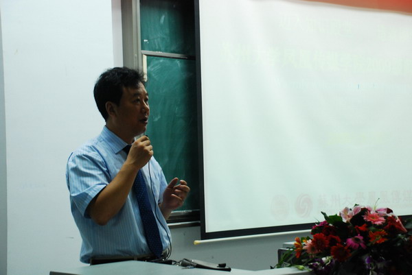 院党委书记赵阳老师也发表了讲话。她对学院作了更为具体的介绍,以便让2009级新生更好地了解他们的学习生活环境,提升对学院的归属感和认同感。赵书记指出,学院为各位学生提供了较好的硬件设施,也配备了一支良好的师资队伍,希望同学们能够尽快适应大学生活,实现高中生到大学生、大学生到研究生的华丽转身,凭借勇气、毅力为美好的将来奠定基础。