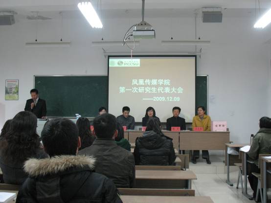 12月9日下午,凤凰传媒学院第一届研究生代表大会于苏州大学独墅湖校区二期1002幢2301隆重召开。院党委书记赵阳,副院长陈龙,院党委副书记常青伟,校团工委书记胡海峰老师出席了本次代表大会,另外研究生班主任张健,研究生秘书唐庆华、张微,苏州大学研究生会主席马书明同学也到场参加了会议。大会选举产生了凤凰传媒学院第一届研究生会的成员。