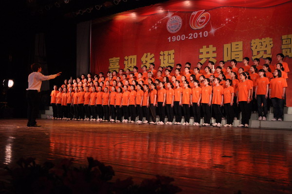 3月6日,学院将合唱比赛通知下达到本科生、研究生、成教生所有班级以及每位教职工,号召全院师生踊跃报名,用自己的歌声为院争光,为母校生日添彩。3月7日,各个口子将报名人数递交给院办公室,报名情况令人欣喜,160多名老师和学生都满怀激情报名希望为校庆作一份自己的贡献。3月上旬的初期准备工作进展得十分顺利,在专业人士的建议下《复兴之路》与《在灿烂阳光下》成为合唱备选曲目。为了突显110周年校庆的精华与意义,经过2轮筛选最终确定由100名学生与10名老师组成110人的合唱阵容参加此次比赛。