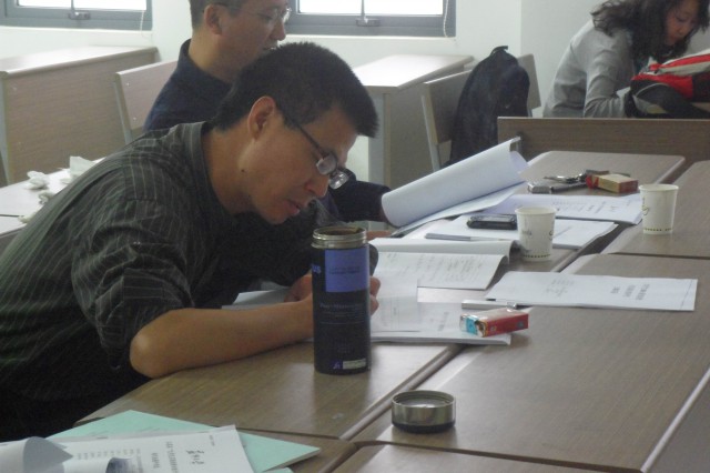 07级的华乐同学也自信满满地走上讲台。她们团队的课题是《网络在大学生创就业过程中的调查和分析》。她主要针对大学生开网店的现象进行了分析,并且还展示了在采访中的一些照片。老师们对她的课题研究予以充分的肯定,一致认为她的课题研究思维周密,并且最后研究提出的建议也很有实践性。