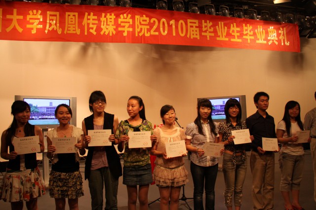 6月29日下午3:45,凤凰传媒学院2010届毕业生毕业典礼在文综楼1005幢一楼演播厅隆重举行。学院全体领导、老师代表及2010届毕业研究生、本科生出席了典礼。典礼仪式由学院副院长徐国源老师主持。
