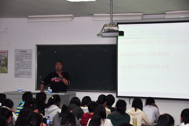此次讲座,让很多在英语学习道路上徘徊迷茫的同学豁然开朗,使大家对备战英语四六级考试有了明确方向。同学们不仅树立了对考试的信心,更明白了追求卓越、挑战极限的人生哲理,感悟到了坚韧不拔、永不言败的精神境界,真是不虚此行。