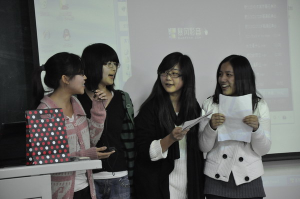 在第二轮环节中,新闻3班的3个宿舍围绕“职业,人生”这一话题,分别表演了“包二奶历险记”、“他乡遇故知”、“不能说的秘密”等3个小短剧,搞笑的剧情、生动的表演活跃了现场氛围。在这样活跃的气氛中,同学们也以自己独特的表现方式,说出了自己对于未来的畅想,在笑声中交流了彼此对职业和人生规划的启迪和感悟。