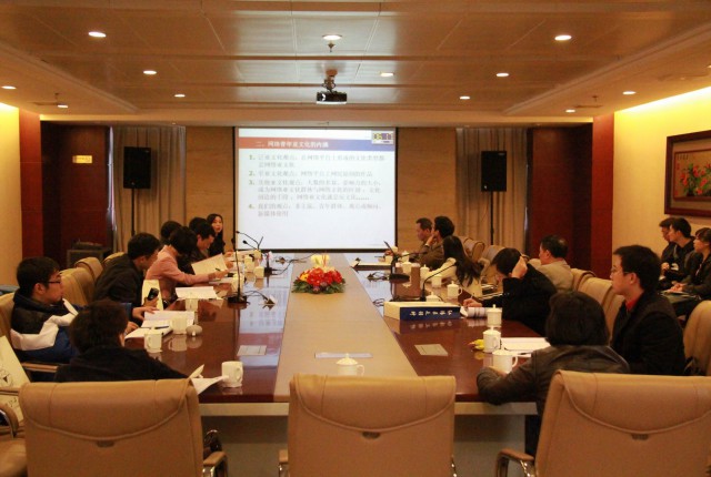 12月5日上午,分组论文宣读继续进行。在曾一果老师主持的“新媒体时代的媒介文化”分单元中,马中红教授宣读了《网络青年亚文化的理论研究及其批评》,陈霖教授宣读了《网络再编视频的青年亚文化论析——以土豆网为例》,陈一博士宣读了《“主流影像”与“个人影像”的互文——关于纪录片<人民至上>与<1428>的解读》等论文。他们的论文选题围绕“新媒介与青年亚文化”展开,角度新颖、内容丰富,系新媒体时代媒介文化研究的前沿议题,引起了与会代表的浓厚兴趣。此外,马中红教授还应邀担任了“新媒体时代的组织传播与经营管理”分单元的点评嘉宾,就这一单元宣读的数篇论文进行了精彩点评。