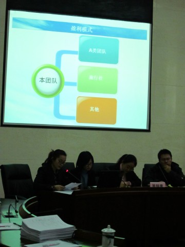 下午4:30,在经过几个小时的等待与充分准备后,她们进入答辩室开始了自己的展示。两位同学配合默契,详细而又严谨地介绍了她们的创业方案。演示结束后,评委对她们新颖的创意给予了高度的评价,同时就盈利模式等方面的些许局限作了提问和探讨。