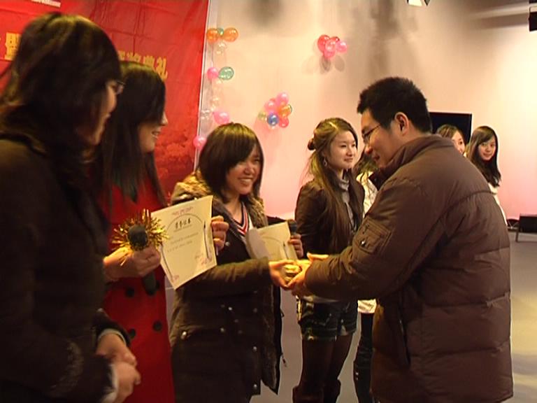 首先进入的是年度人物颁奖环节。在播放完各位年度人物的宣传视频之后,通过演讲拉票、人人网投票而最终选出了学院年度人物。他们分别是:创意之星夏茜颖、幽默之星陆冲、思辨之星魏雯燕、才艺之星席云竹、勤勉之星华乐、奉献之星许恬甜。院领导以及周立人先生分别为获奖同学进行了颁奖。