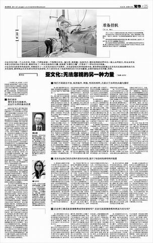 凤凰传媒学院新闻传播系主任陈霖教授和广告研究所所长马中红教授,在今年1月27日南方周末文化版(第25版),发表7000字的长篇对话《亚文化,无法忽视的另一种力量》。据悉,这是我院教师首次在广有影响的大众媒体发表学术研究的成果。