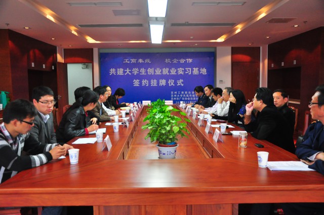 2011 年11月2日下午3点,苏州大学凤凰传媒学院创就业实训基地签约授牌仪式在苏州市工商局沧浪分局9楼会议室举行。出席此次签约授牌仪式的有苏州市工商局广告处陶令敏处长、顾红副处长、工商沧浪分局马新荣局长、张刚副局长、苏州市广告协会周学仁秘书长、沧浪区人力资源和社会保障局汪忱局长;相关企业负责人:苏州华芳传媒文化有限公司李芳、苏州互联印象科技有限公司陈成、苏州世东企业管理有限公司叶莉、金诚传媒投资有限公司徐佳蓓;苏州大学招生就业处处长马卫中、凤凰传媒学院党委书记赵阳等领导及师生代表。签约授牌仪式由苏州市工商局沧浪分局副局长张刚主持。