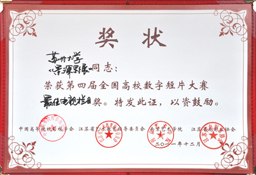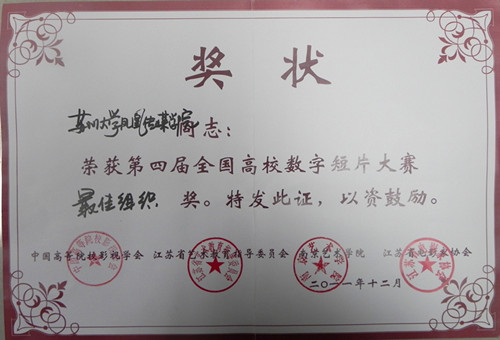 在日前结束的第四届全国高校数字短片大赛中,由我院学子拍摄、制作的《景深影展》获“最佳电视栏目奖”,我院与中国传媒大学、北京电影学院等其余9所高校并列荣获本次大赛的“最佳组织奖”。