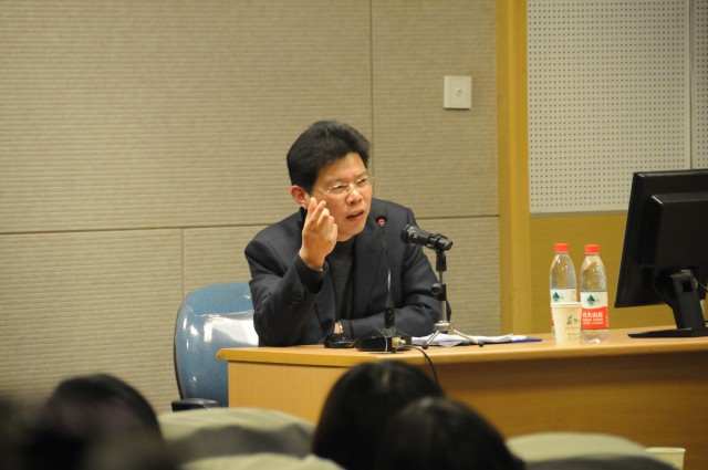吴台长结合自己的体会与经历,认为“全心全意”是衡量媒体人的一杆秤,是广电事业发展对媒体人特质要求。“全心”指四要,要朝气蓬勃、要吃苦耐劳、要精益求精、要创造创新之心。有“60年代忍耐、70年代执着、80年代精神、90年代视野”。 “传媒人无假期,要苦中有乐,没点吃苦的劲,是做不来这行的。” “很多记者网上搜两段,再加上随便采访的凑段,一篇稿子就完事了。一定要能吸引人的注意,这样才是好新闻。主流媒体是要勇于承担责任的”。“全意”指做好新闻,要有“大局意识、政治意识、规律意识、自省意识”。讲座中结合实际的体会与案例,在活泼的氛围中引发学生的深思,赢得台下的掌声不断。