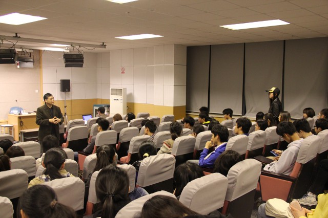 4月11日晚,天突然变凉了,然而坐在1005幢5339室的同学们却感受不到一丝寒意,他们正在聆听倪祥保教授主讲的“电影新关键词——微、小、大”讲座,正在认真思考倪教授提出来的问题。片刻之后,部分研究生与本科生积极表述了自己的观点