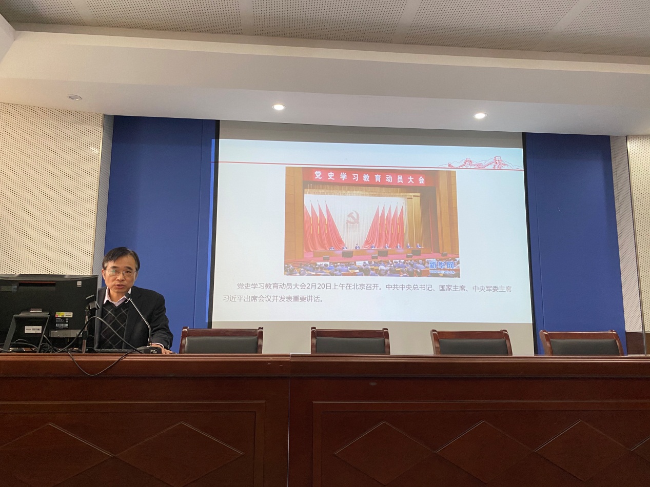 大会第二项议程是宁正法带领全院教工学习了“习近平在党史学习教育动员大会上的重要讲话”精神。学习内容围绕为本次党史学习教育的必要性、意义及“为什么学”“学什么”“如何学”等方面展开,他指出,习近平总书记在党史学习教育动员大会上的重要讲话,立足中国共产党百年华诞的重大时刻和“两个一百年”历史交汇点的关键节点,站在统筹中华民族伟大复兴战略全局和世界百年未有之大变局的时代高度, 对党史学习教育进行全面动员和部署,为我院开展好党史学习教育指明了方向,提供了根本遵循。