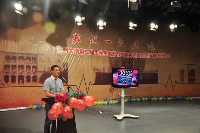 6月17日晚6:00,凤凰传媒学院1005演播厅里人头攒动,“苏州大学第二届大学生电影节颁奖典礼暨凤凰传媒学院2008级毕业生晚会”在这里如期举行。校团委副书记程晓军、凤凰传媒学院院长芮国强、院党委副书记常青伟、教师代表陈霖、杨新敏等领导和老师出席。