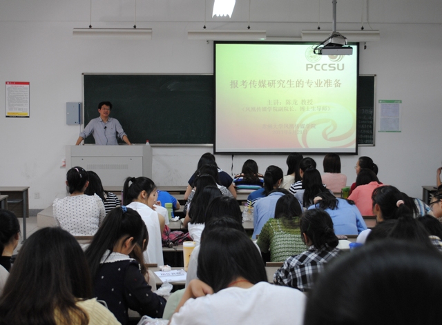 成千上万的考研大军,年年飙升的考研要求,越来越大的求职压力即将成为11级学子所要面临的难题。5月28日上午,凤凰传媒学院副院长、博士生导师陈龙教授于文综楼1003幢3203室为学院11级学生带来了一场关于《报考传媒研究生的专业准备》的主题讲座。