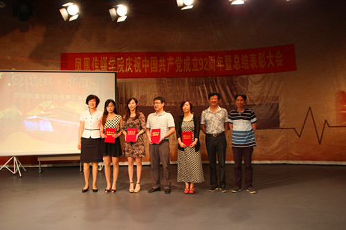 6月26日,凤凰传媒学院为庆祝中国共产党成立92周年召开表彰大会,暨以“党旗红•中国梦”为主题的凤凰传媒学院党员集中主题教育活动。大会由学院党委副书记、副院长常青伟主持,学院党委委员、党政领导以及教师学生党员出席了本次会议。