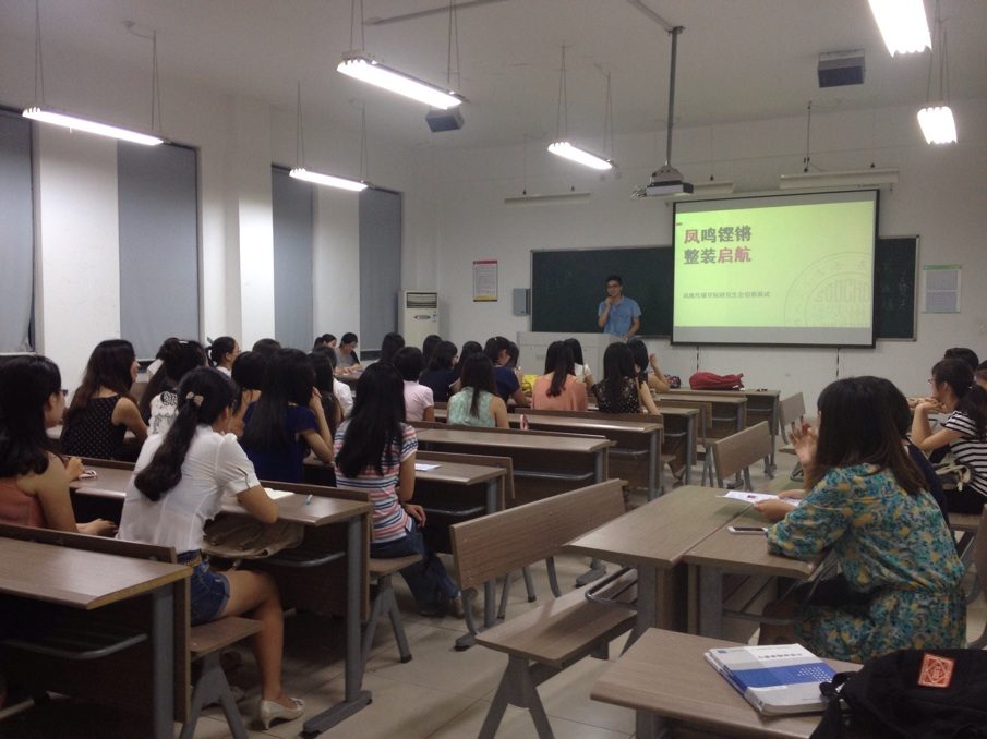 8月26日,凤凰传媒学院2013级研究生开学典礼在文综楼举行。开学典礼不仅从形式上展示出“进入”学校的状态,更是在心理上让新生们做好回归校园和课堂的准备。