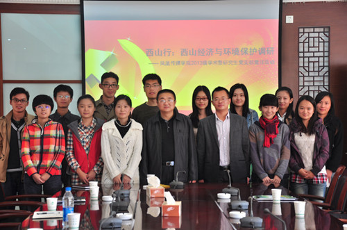 11月1日,为了深入贯彻落实党的群众路线,进一步增强党支部的凝聚力和战斗力,鼓励大学生深入基层了解生态与经济和谐发展的重要意义,凤凰传媒学院2013级学术型研究生党支部全体成员共同前往苏州市吴中区西山进行经济与环境保护的调研。金庭镇环保局局长张新庆、副局长吴建、旅游发展局副局长邹永明、招商办主任周玲丽为我们介绍了金庭镇的发展状况,并与支部成员就当地经济与环境保护的现状与发展思路进行了讨论。