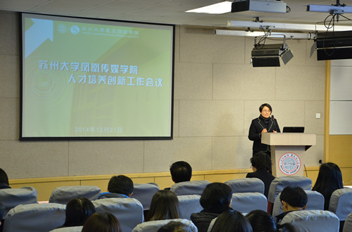2014年12月27日,学院人才培养创新会议在独墅湖校区文科综合楼5339报告厅召开,苏州大学副校长蒋星红,教务部部长周毅、处长王剑敏,学院党委书记于毓蓝,院长陈龙,副书记、副院长常青伟等领导出席此次会议,学院全体教师及各年级的学生代表参加了会议。会议由学院党委书记于毓蓝主持。