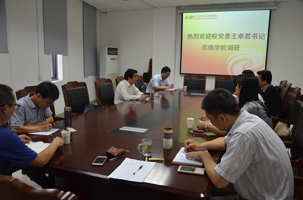 6月10日上午,校党委王卓君书记来到学院,就“十三五”规划制定和“三严三实”专题教育进行调研。院党委书记于毓蓝,副书记、副院长常青伟,副院长徐冉和学院教师代表出席了座谈会。