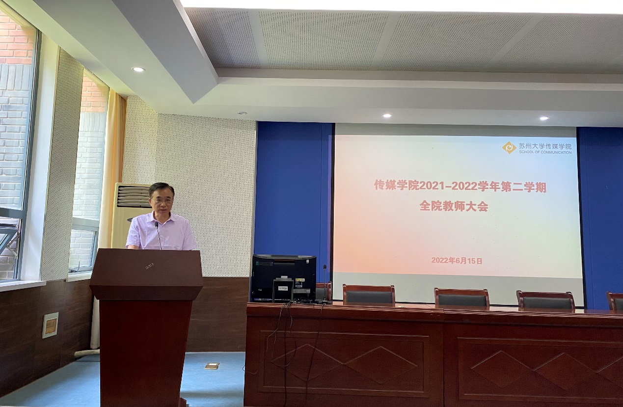 2022年6月15日下午,传媒学院于1005幢5148教室召开全体教师大会。