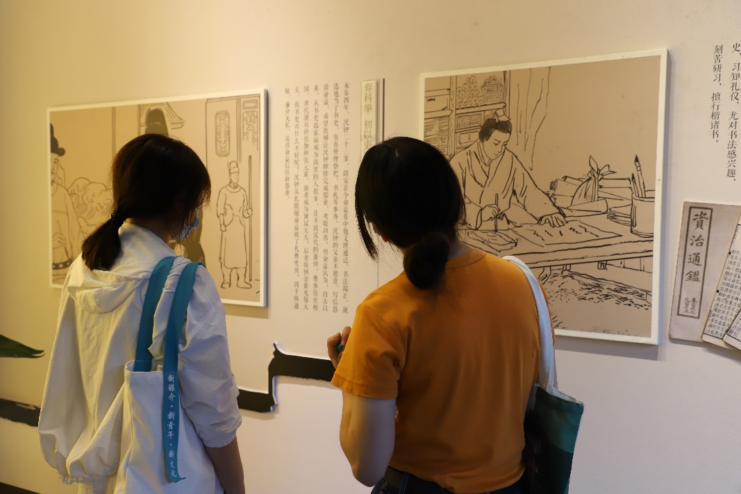 展厅整体以黑白色调为主,通过各类声光影全媒体技术,将传统与现代相结合,融合了场景造景、艺术雕塑、多媒体互动等展项。在“政德润苏”厅,党员师生们可以选择官史、士子或百姓等角色,跨越时空与况公“对话”,聆听况公的治世思想,在对话中感悟其重民爱民、安民保人的勤廉之贵。同时,全息长卷图画集中生动再现了况公的工作、生活情景,一首况公任满6年进京述职时写下的《饯别诗》,“检点行囊一担轻”也让党员师生真切感受到况公的清正廉洁。