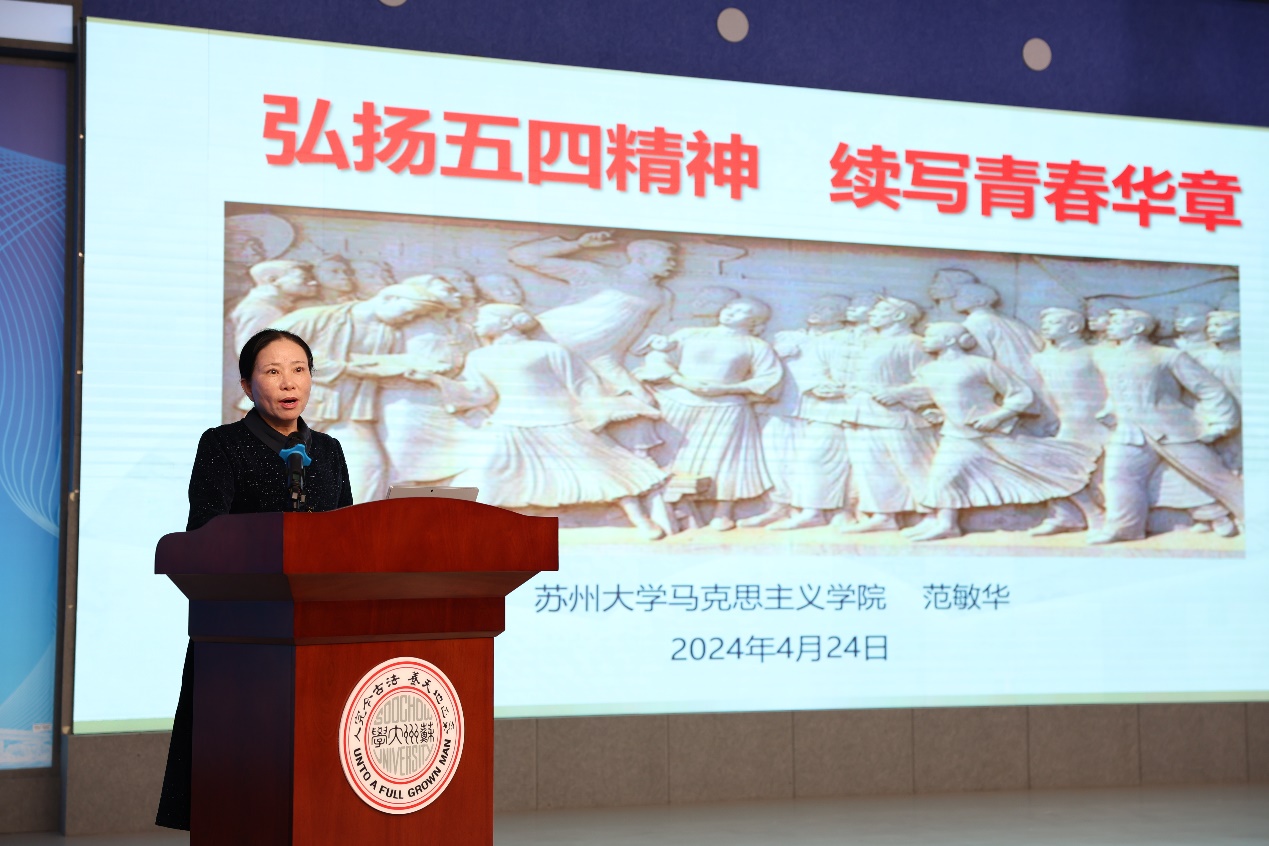 为深入学习贯彻习近平新时代中国特色社会主义思想和党的二十大精神,巩固深化团员和青年主题教育成果,充分发挥先进典型示范引领作用,激励全院团员、团干部和团支部奋发有为,引导全院青年学生担当作为,4月24日下午,传媒学院“永远跟党走 奋进新时代”五四表彰大会暨信仰公开课在独墅湖校区1005幢大演播厅顺利举行。苏州大学马克思主义学院副教授、苏州大学党史学习教育宣讲团成员、关工委“五老”讲师团成员范敏华,传媒学院党委副书记、副院长丁姗,学工办主任宋智,团委书记王雁冰,学工办副主任朱飞,以及学院青马工程学员、本科生和研究生代表出席本次大会。